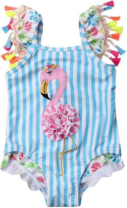 Kids Toddler Baby Girl One Piece Swimsuit Beach Wear Striped Flamingo Tassels Swimwear Bathing Suits 0-6T