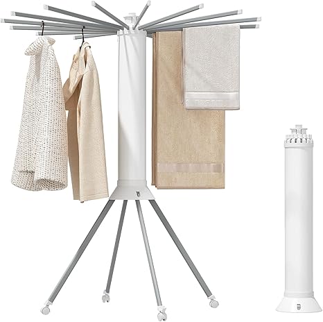 Kitstorack Clothes Drying Rack Laundry Rack Quadrupod Laundry Drying Rack Collapsible with Wheel Portable Drying Rack 16 Aluminum Drying Rods