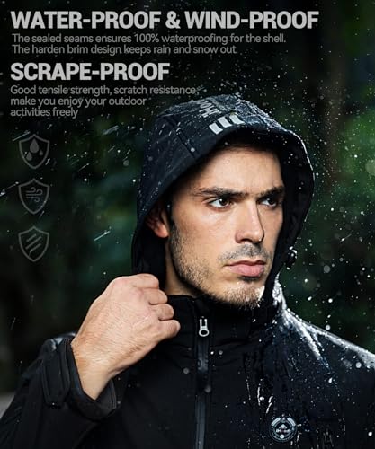 • 【Waterproof & Windproof & Snowproof & Scrapeproof】This iHood machine-washable heated jacket, is water, wind and scrape resistant.The harden brim design keeps rain and snow out. Perfect for all fall and winter outdoor activities, including walking your dog, skiing, skating, hiking, fishing, camping, or just your everyday commute.