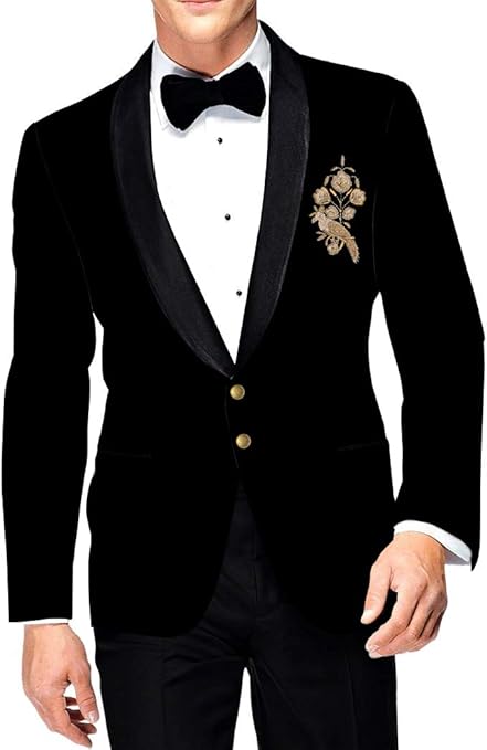 Mens Slim fit Black Velvet Casual Blazer with Golden Hand Embroidery SB12145