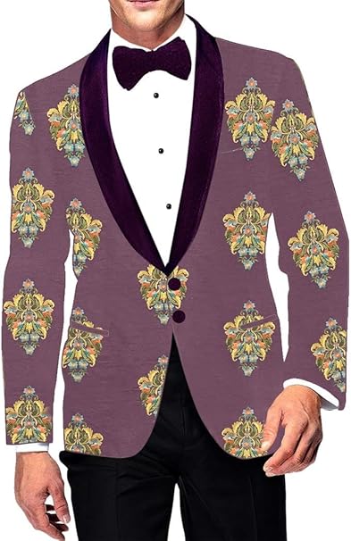 Purple Wine Embroidered sport jacket coat Shawl Collar Mens Blazer SBM1041