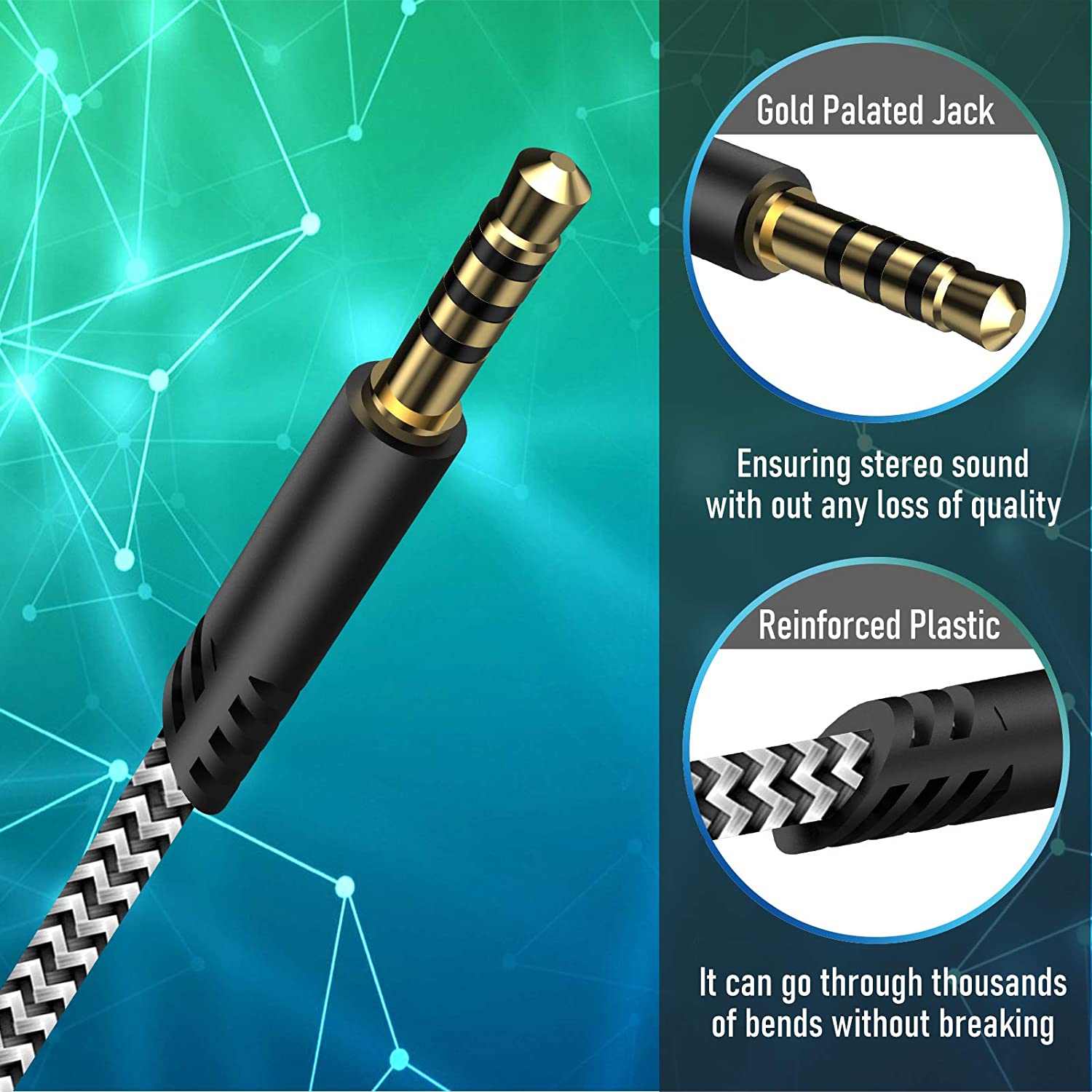• ✅【High Quality Materials】:3.5mm Golden Plated Audio Jack, Oxygen-free copper and gold plated connectors.The nylon braided thread can prevent knotting and is more durable.100% copper wire core provides you with high-speed and stable signal transmission. Achieve clear sound transmission and lossless 3D stereo sound quality , provide clear sound when you gaming for enjoying your free time.
