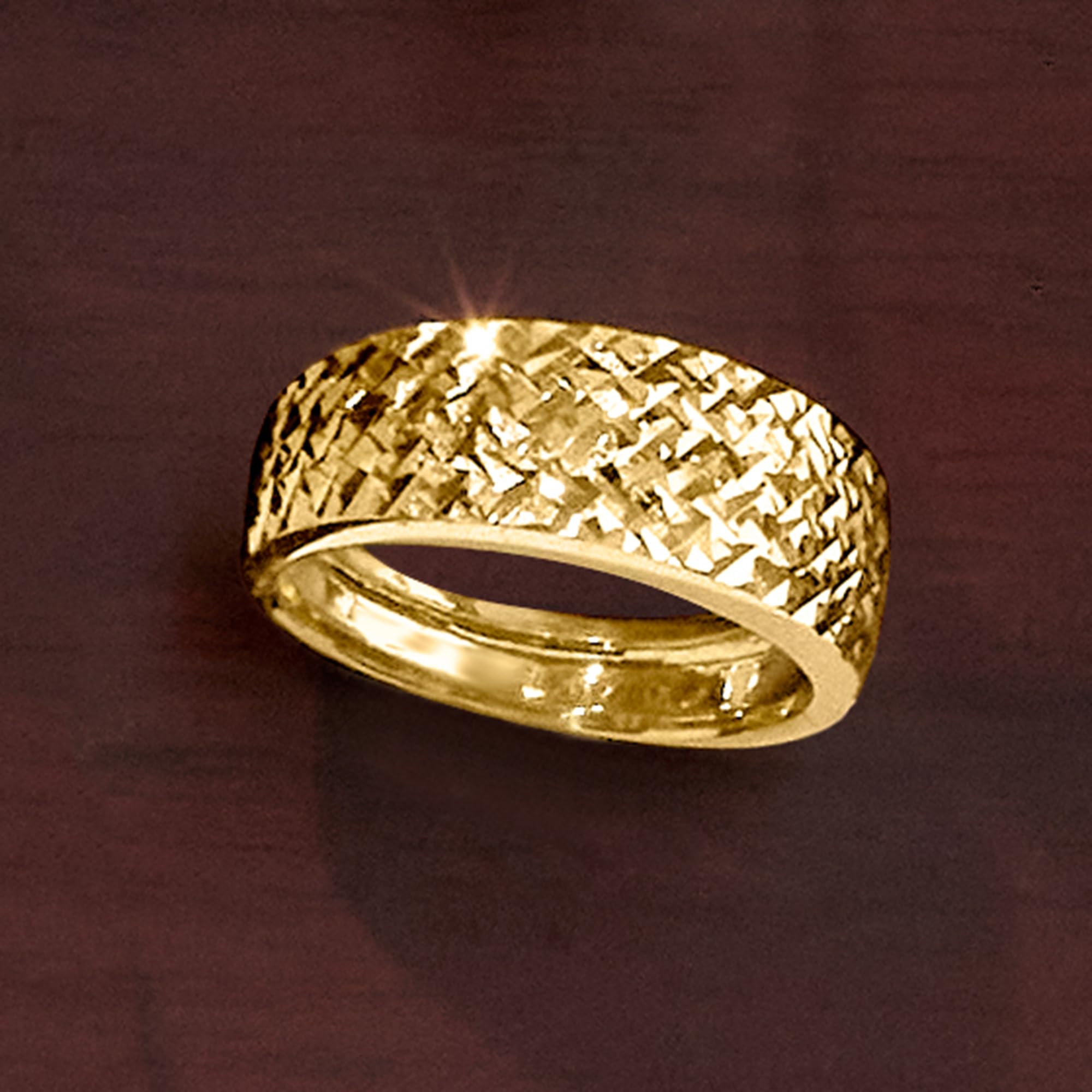 Details: Established in 1952, Ross-Simons brings jewelry classics into the modern era. Italian goldsmiths take the contemporary road on this design. Diamond-cut and polished finishes cover the surface of the ring in a glittery, geometric texture. 1/4" wide. 14kt yellow gold ring.