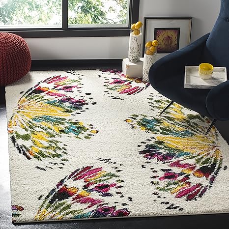 SAFAVIEH Fiesta Shag Collection 8' x 10' Cream / Multi FSG368A Modern Non-Shedding Living Room Bedroom Dining Room Entryway Kids Area Rug