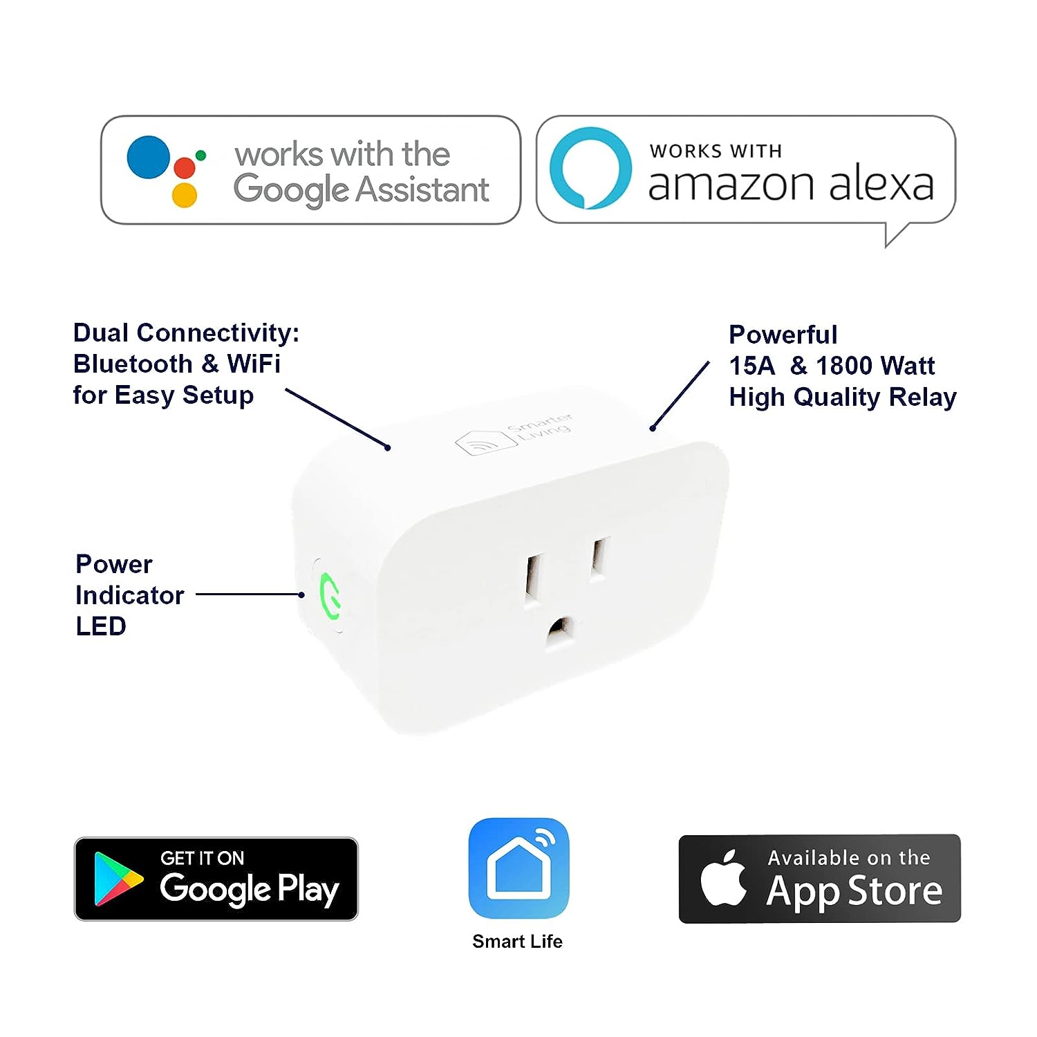 Smarter Living - Smart Plug WiFi (New 2021 Model), 2-Pack, Compatible with Alexa and Google Home, Voice and Smart Life and Tuya app control.