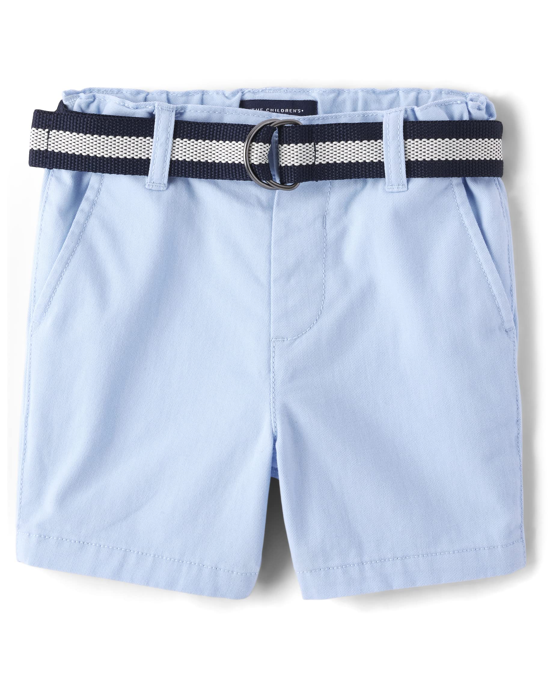 The Children's Place Baby Boys' and Toddler Twill Belted Chino Short, Whirlwind Blue, 2T