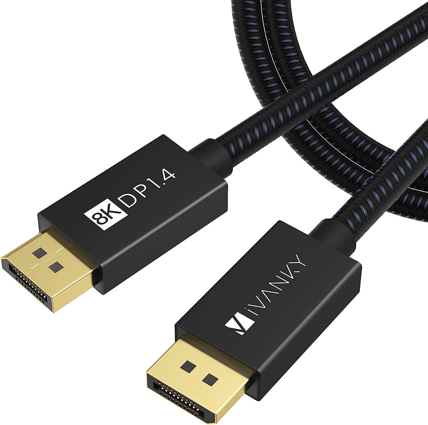 VESA Certified DisplayPort Cable 1.4, iVANKY 8K DP Cable 6.6ft (8K@60Hz, 4K@144Hz, 2K@240Hz)HBR3 Support 32.4Gbps, HDR, HDCP 2.2, FreeSync G-Sync, Braided Display Port for Gaming Monitor, Graphics, PC