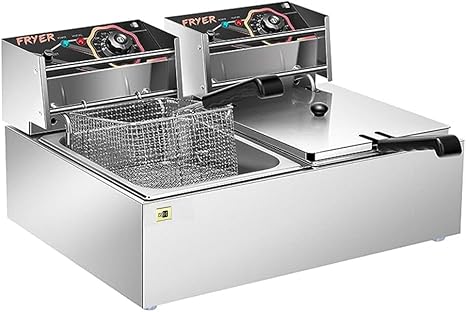 VIVOHOME 110V 20.7 Qt Commercial Electric Deep Fryer with 2 x 6.35 QT Removable Baskets, Overheat Protection