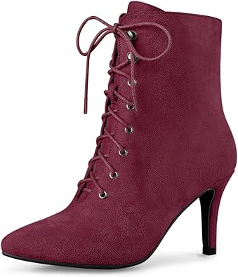 Allegra K Women's Pointy Toe Zip Lace Up Stiletto Heel Ankle Boots