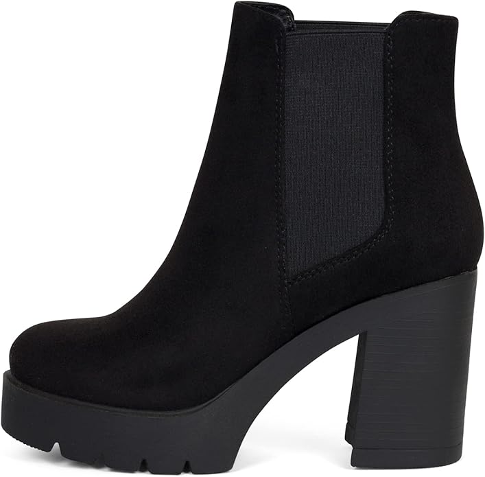 ~ Top ~ Women High Heel Lug Sole Chelsea Fashion Double Elastic Gore Ankle Boot