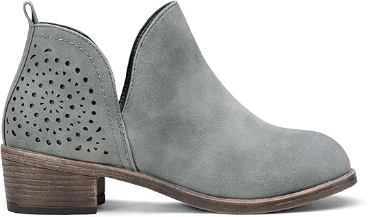 Vepose Women's Ankle Boots Low Heels Chunky Cutout Booties+Perforated Western Shoes