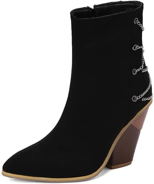 WIRALOMI Women's Ankle Boots with Heel, Pointed Toe Cowgril Boots with Chain, Side Zipper Short Booties