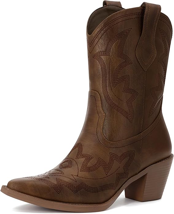 Women Cowboy Boots Embroidered Western Cowgirl Boots Pointy Toe Ankle Boots Short Booties with Pull On Tabs