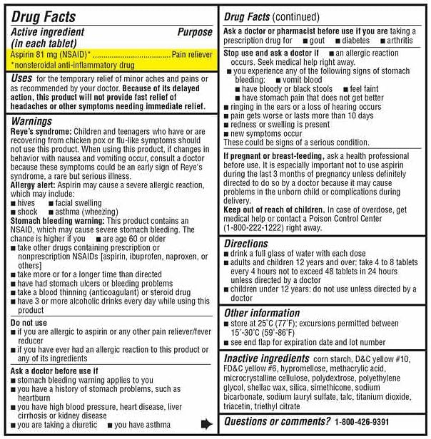 Generic Kirkland low strength adult 81mg aspirin is used for the temporary relief of minor aches and pains or as recommended by a doctor.