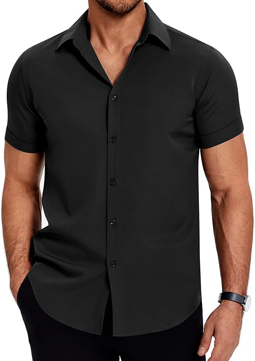 COOFANDY Men's Short Sleeve Dress Shirts Strech Stain Shield Button Down Shirts