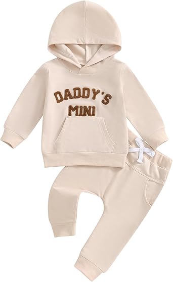 Toddler Baby Boy Clothes Fall Winter Outfits Embroidery Daddy's Mini Hoodie Sweatshirt & Joggers Pant Set