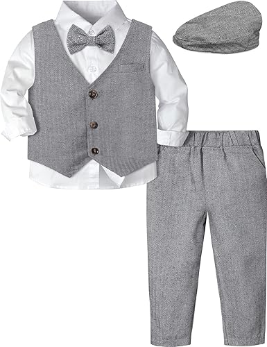 A&J DESIGN 5pcs Baby & Toddler Suit, 12 Months - 5T, Shirt & Pants & Vest & Bow Tie & Driver Cap
