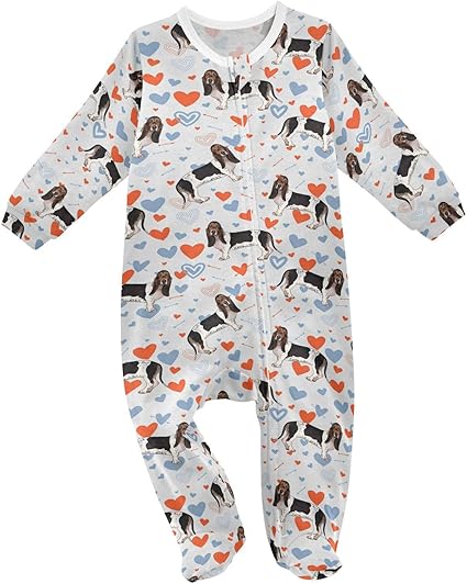 Beagle Dog Design Baby One-Piece Footies Long Sleeve Rompers Pajamas Zip Front Pjs for Boys Girls kids 3M