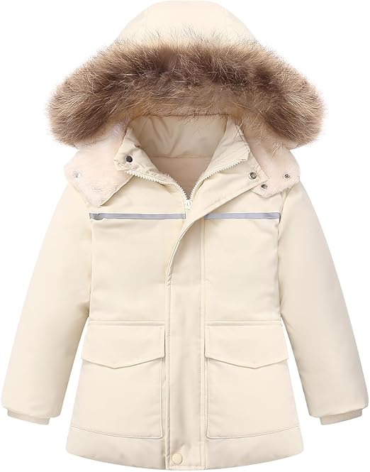 Baby Boy Winter Warm Jacket Toddler Girl Fur Collar Hooded Coat Kids Outerwear