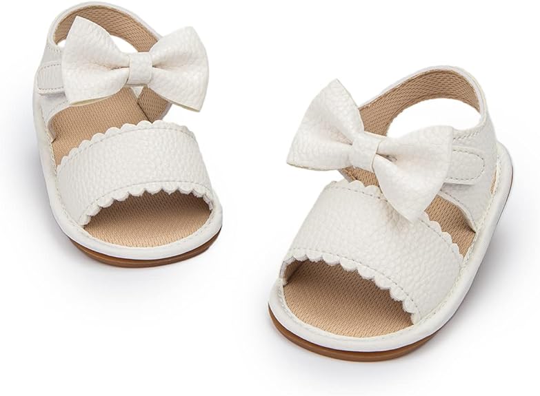 Miamooi Infant Baby Girls Boys Sandals Summer Bowknot Crib Shoes Toddler Pu Leather Flower Soft Rubber Sole Dress Flats First Walker Shoes
