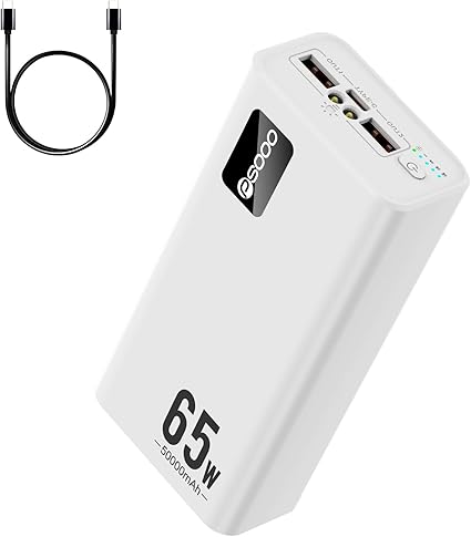 50000mAh Power Bank 65W, Portable Charger, External Battery Pack for Outdoor Camping, Home & Office. Emergency Back-up Power for Smartphones, Tablets and Laptop