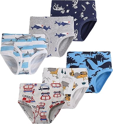 Baby Soft Cotton Underwear Little Boys Dinosaur Briefs Toddler Shark Undies Children Truck Panties(Pack of 6)