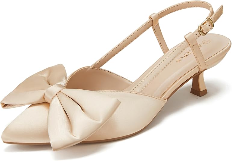 ALICEPUB Women's Bow Heels Slingback Heels Pumps Closed Toe Kitten Heels Pointed Toe Pumps Low Heels for Women Comfortable Dress Shoes Wedding Shoes