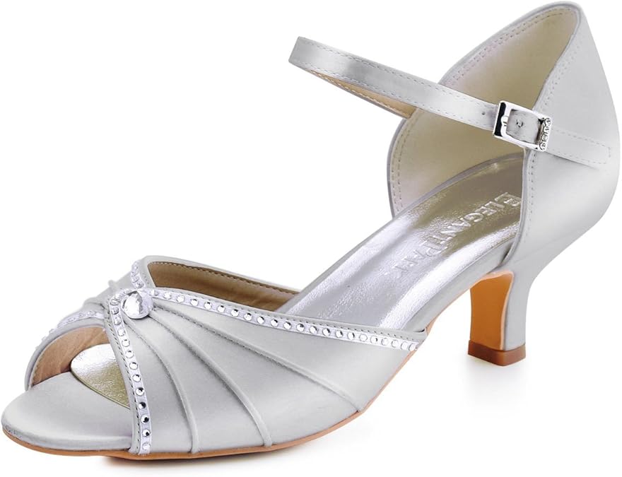 ELEGANTPARK EL-035 Women Peep Toe T-Strap Pumps Mid Heel Rhinestones Satin Evening Wedding Bridal Sandals