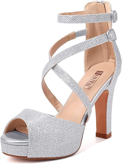 IDIFU Women's IN4 Platform Heels Strappy Chunky Heels For Women Dressy Peep Toe High Heels For Women Bridal Wedding Shoes For Bride On Evening Prom