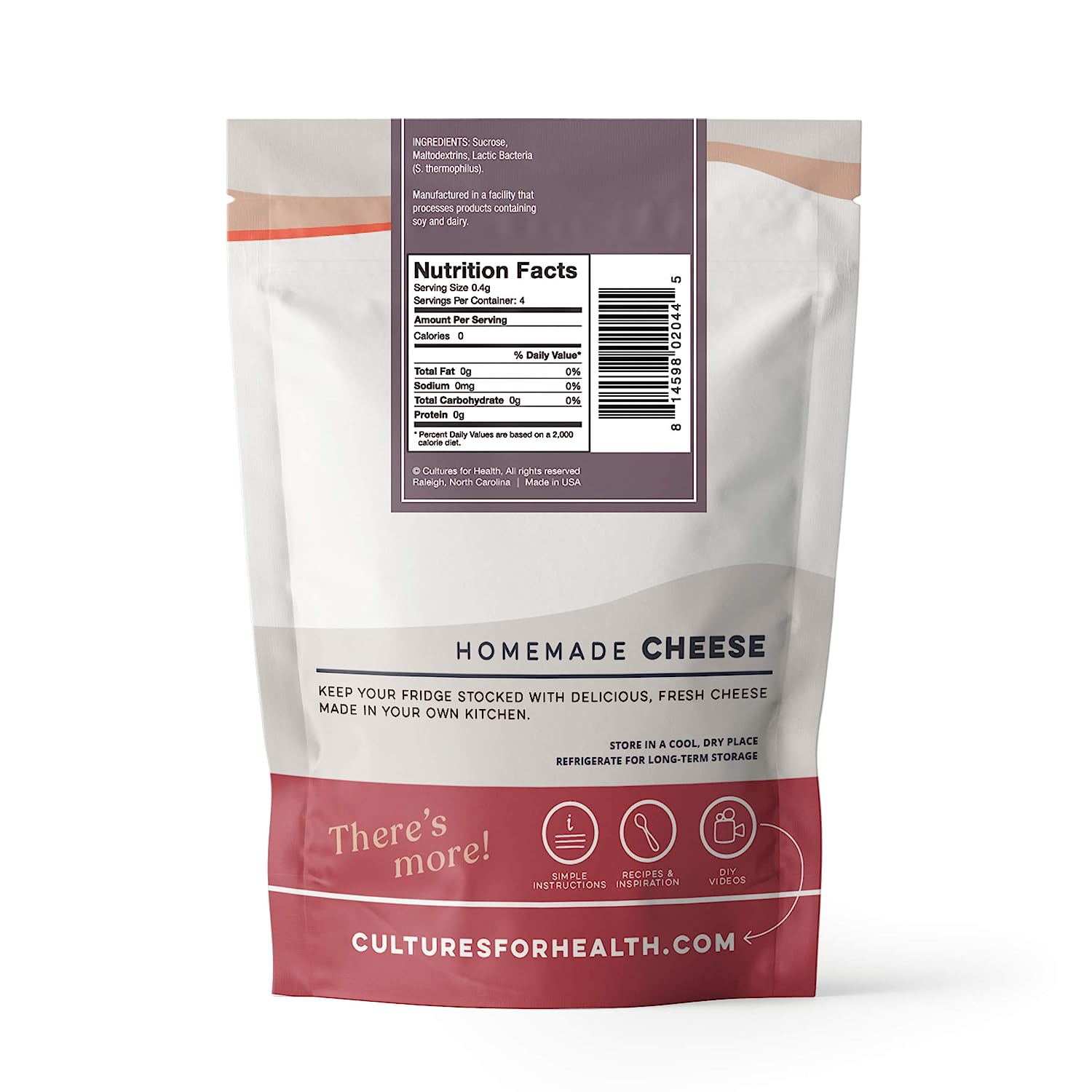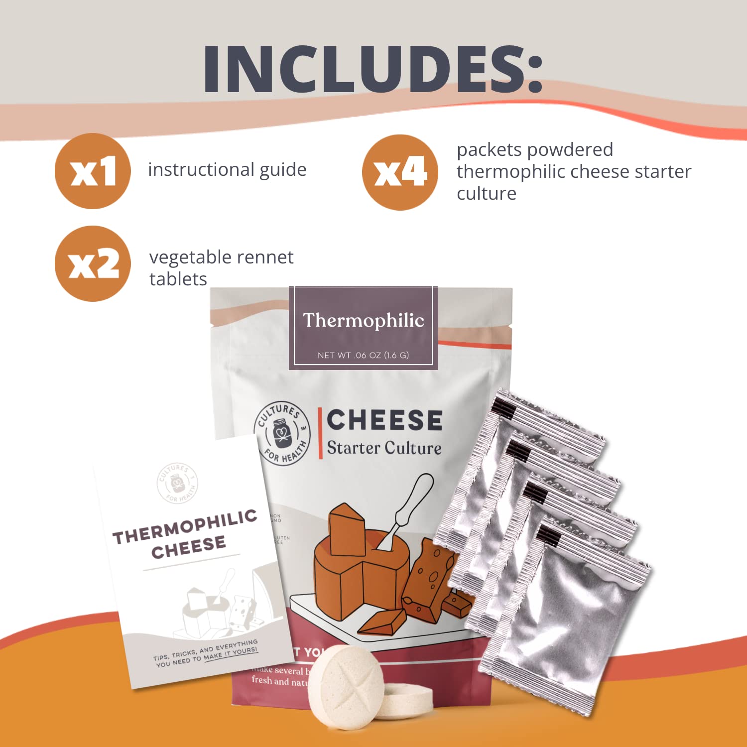 Cultures for Health Thermophilic Cheese Starter | 4 Packets Gluten Free Direct-Set Culture + 2 Vegetable Rennet Tablets | DIY Hard Cheese, Parmesan, Mozzarella, Asiago, Romano, Swiss Cheese, & More