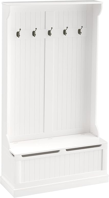 HOMCOM 38" 3-in-1 Entryway Hall Tree with Storage Bench, Coat Rack with Four Hooks and Shoe Storage, White
