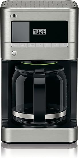 Braun KF7070 BrewSense Drip Glass Coffeemaker, 12 Cup, Stainless Steel