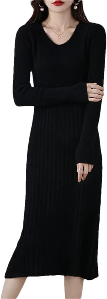 Women Autumn Winter Slim Dress Wool Thicken Warm Sweater Dress Basic Knit Pullover Casual Dresse