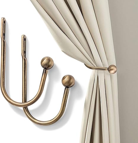 Curtain Holdback, Premium Metal Decorative Curtain Holdbacks with Zinc Alloy Cap Finials, Rust-Proof, Set of 2 Window Curtain Holdbacks (Brass)