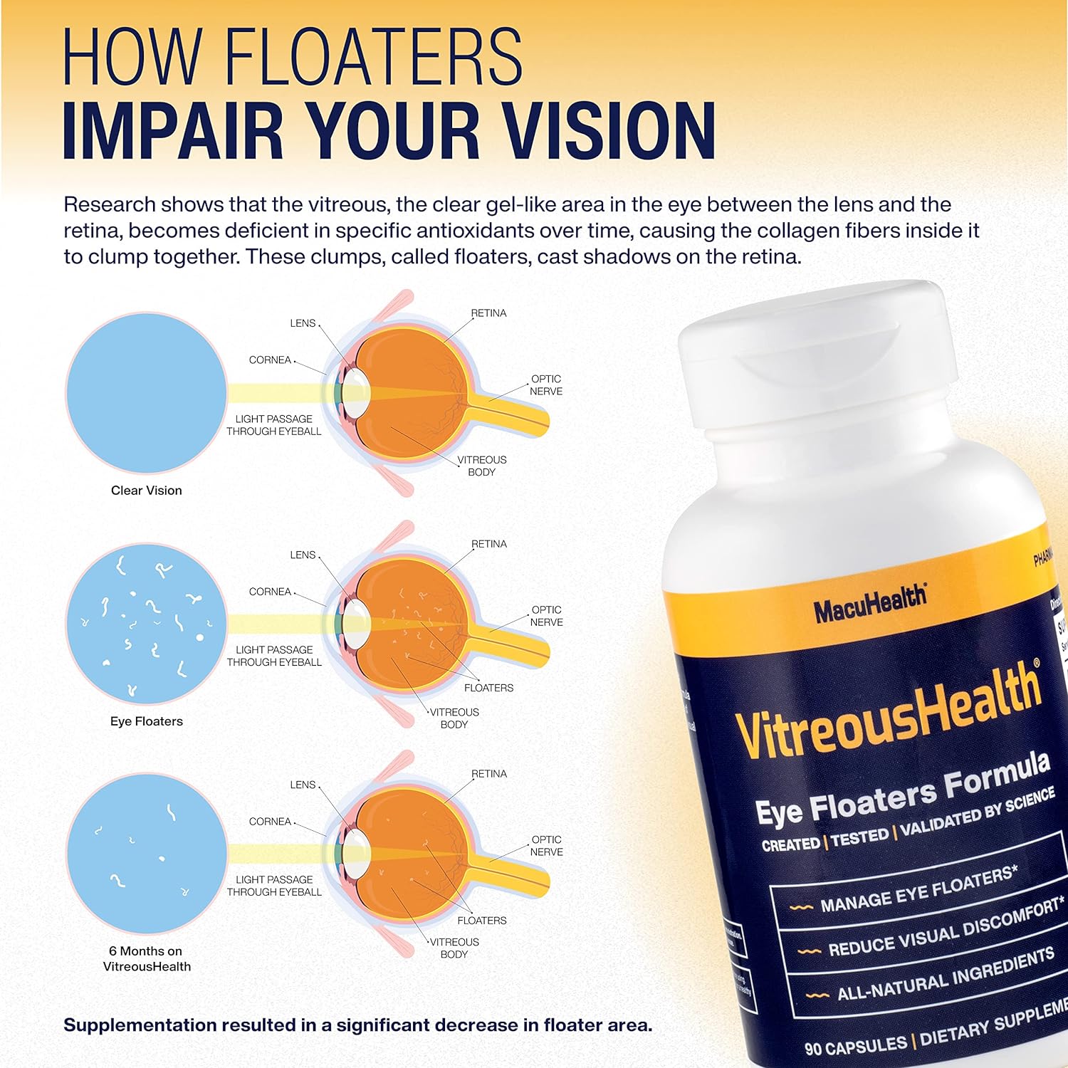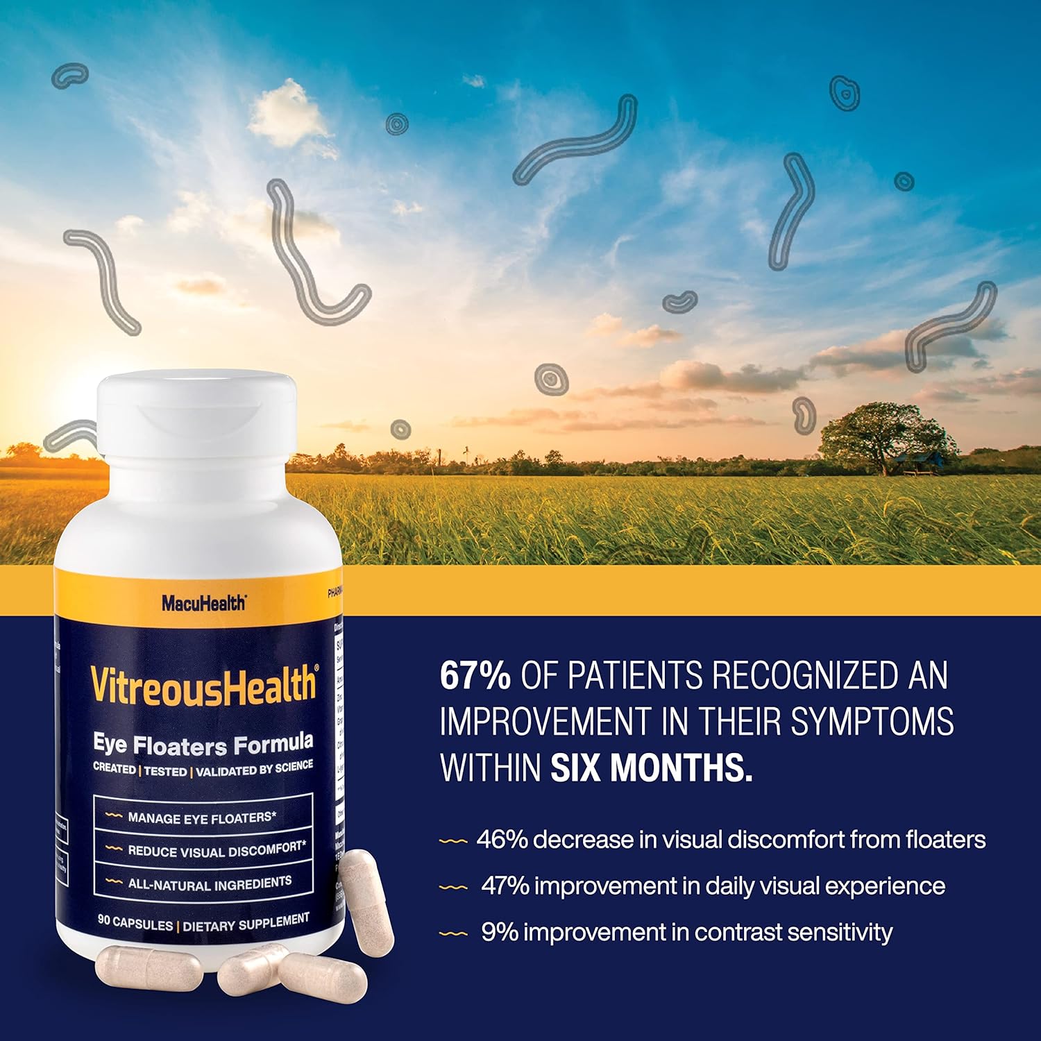 Macuhealth VitreousHealth Evidence Based Eye Supplement for Floaters - Eye Supplements for Adults - 90 Eye Vitamin Capsules - Reduce Eye Floater Symptoms - 3 Month Supply