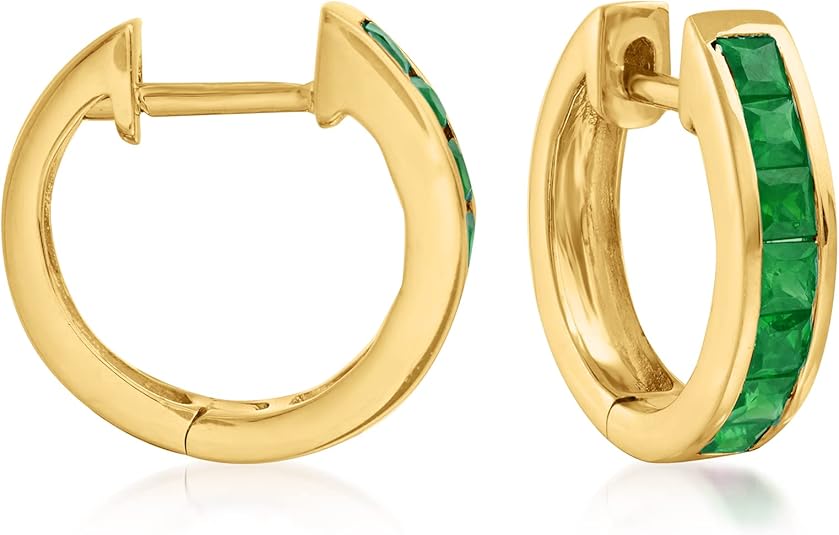Ross-Simons 0.60 ct. t.w. Square-Cut Emerald Huggie Hoop Earrings in 14kt Yellow Gold