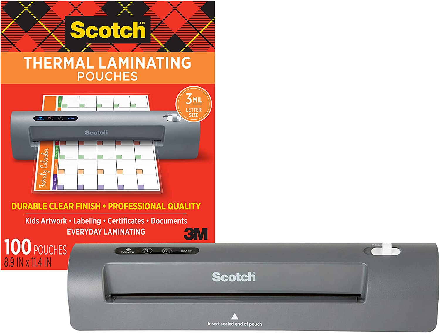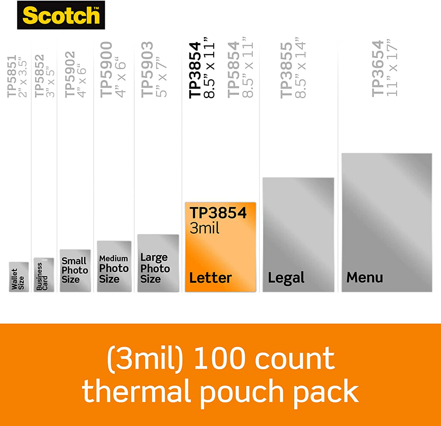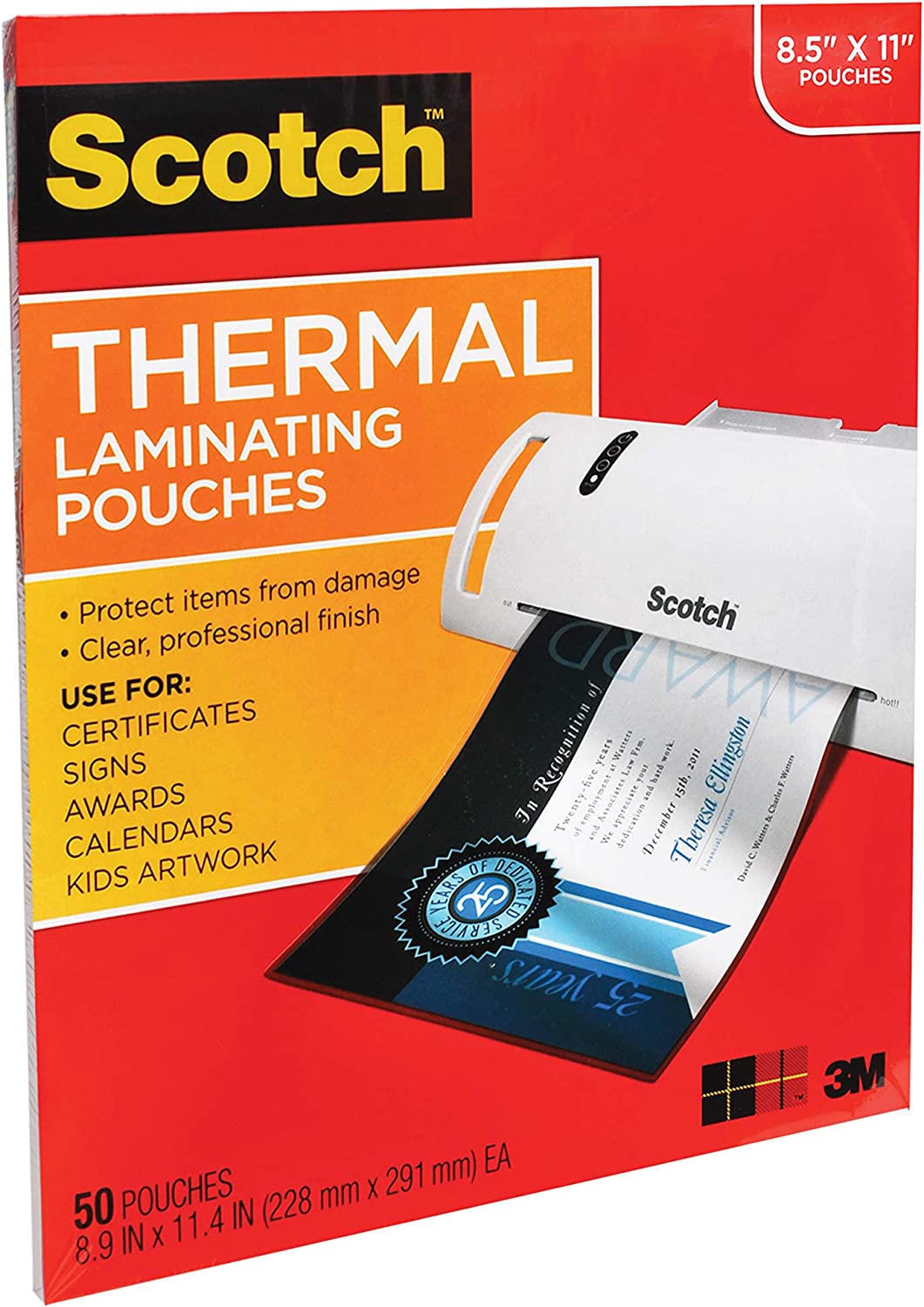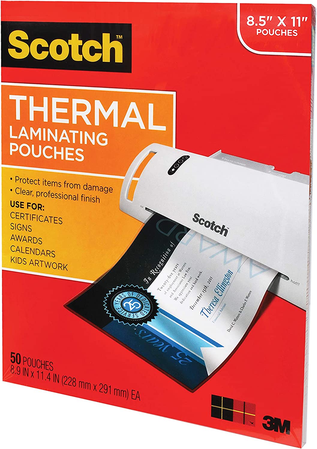 Scotch Thermal Laminating Pouches, 100-Pack, 8.9 x 11.4 Inches, Letter Size Sheets (TP3854-100)