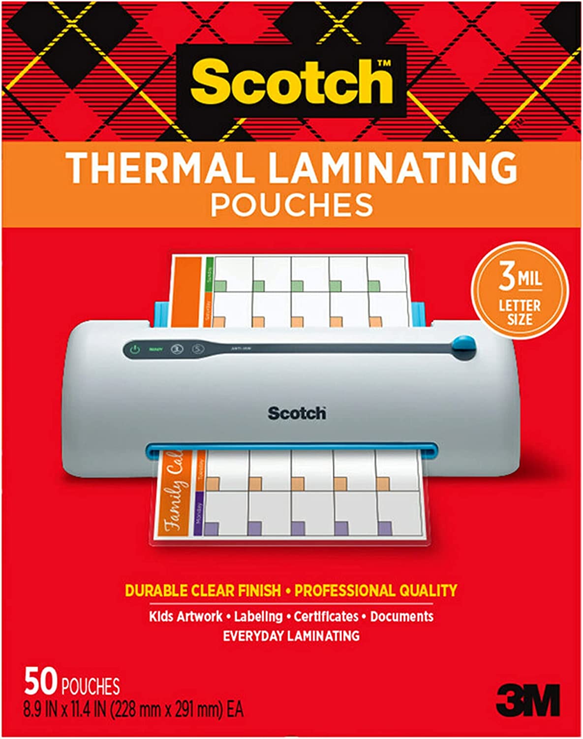 Scotch Thermal Laminating Pouches, 100 Pack Laminating Sheets, 3 Mil, 8.9 x 11.4 Inches, Education Supplies & Craft Supplies, For Use With Thermal Laminators, Letter Size Sheets (TP3854-100)