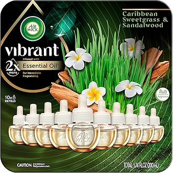 Botanica by Air Wick Plug in Scented Oil Refill, 10ct, Caribbean Sweetgrass and Sandalwood, Air Freshener, Eco Friendly, Essential Oils