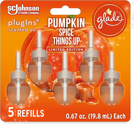 Glade PlugIns Refills Air Freshener, Scented and Essential Oils for Home and Bathroom, Pumpkin Spice Things Up, 3.35 Fl Oz, 5 Count