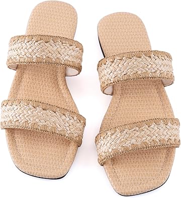 Mtzyoa Women's Sandals Casual Braided Dressy Summer Square Toe Quilted Flat Sandals