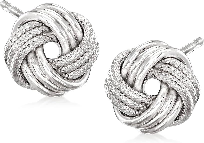 Ross-Simons 14kt White Gold Textured and Polished Love Knot Stud Earrings