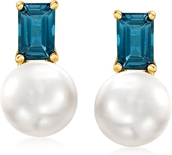 Ross-Simons 8-8.5mm Cultured Pearl and 1.20 ct. t.w. London Blue Topaz Earrings in 18kt Gold Over Sterling