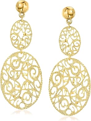 Ross-Simons Italian 18kt Gold Over Sterling Filigree Oval Drop Earrings