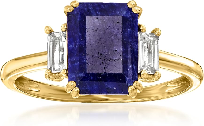 Ross-Simons 2.70 Carat Sapphire Ring With .30 ct. t.w. White Topaz in 18kt Gold Over Sterling