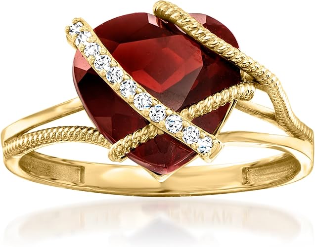 Ross-Simons 3.60 Carat Garnet Heart Ring With Diamond Accents in 14kt Yellow Gold