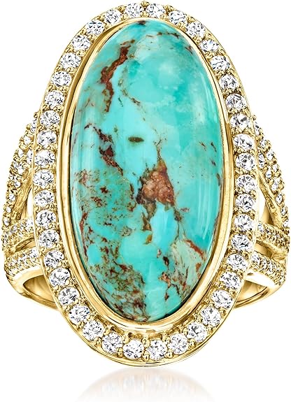 Ross-Simons Turquoise and 1.30 ct. t.w. White Topaz Ring in 18kt Gold Over Sterling