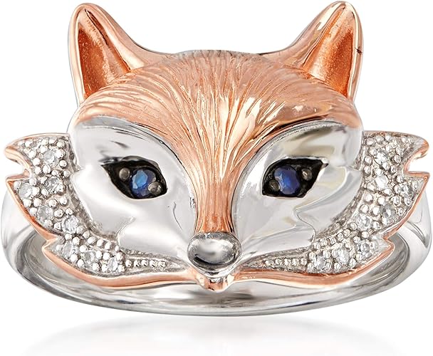 Ross-Simons Two-Tone Sterling Silver Fox Ring With Sapphire and Diamond Accents
