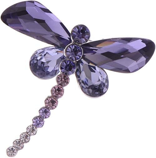 Alilang Silvery Tone Shine Amethyst Purple Crystal Rhinestones Dragonfly Insect Brooch Pin