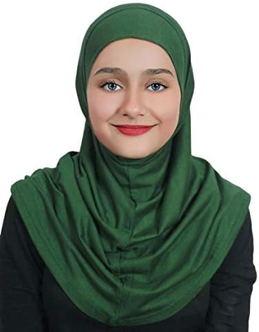 Girl's Hijab Cotton 1 piece Amira Headscarf Cotton one Pcs Hijab (Green)